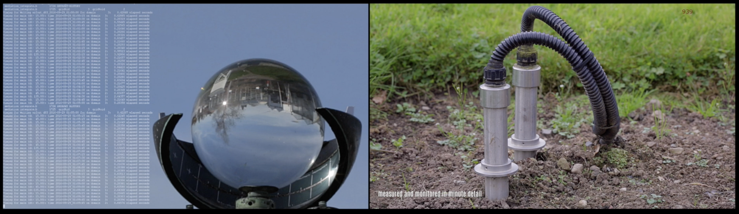 Peripheries explores advancements in technological aids that connect the present and the foreseeable future. The video opens with 41 significant projected storms predicted to affect Ireland between the years 2040 - 2060, and continues on to profile the geographical schedule of events associated with 6 separate forecasted storms. The storm projections in the artwork are based on the output of an ensemble of high-resolution climate models. These models simulate changes in the atmosphere and oceans, as greenhouse gases - such as CO2 - increase and are expressed in terms of Global Positioning System datasets. The work inquires into contemporary concerns about long-term futures and alludes to the ancient world’s arbiter of truth, the Oracle.